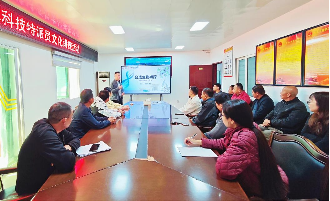 服务期间,余劲聪实地调研非遗手工面线的制作工艺、设备配置及供需情况,针对传统工艺受环境制约、新设备投产扩能、新产品市场适配等核心问题,与企业共同研讨解决方案。同时,余劲聪面向乐峰镇政府工作人员及产业从业人员,开展“合成生物初探”主题讲座。讲座以“空气变馒头!合成生物是什么?”为切入点,用通俗生动的语言解读合成生物学内涵,重点梳理“合成生物+乐峰产业”融合升级路径,助力当地产业升级和乡村振兴。
