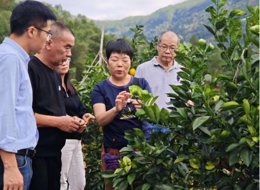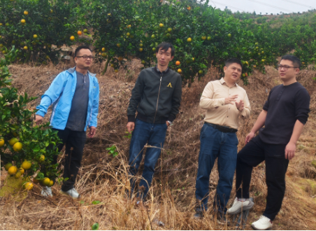 服务企业以来,雷燕铭围绕柑橘种植关键环节,为企业提供多项核心技术支撑。一是优化果树修剪方式,针对当前脐橙、沃柑枝梢生长状态,示范推广“疏旺留壮、控高缩冠”修剪法,指导工人疏除重叠徒长枝、保留基角45°-60°的结果母枝,对高冠果树进行“落头开心”处理,完成3个示范株修剪,预计可提升植株通风透光率30%,为后续均匀挂果夯实基础。二是创新病虫害防治模式,结合基地亚热带高湿气候特点,推广“生物防治+物理诱控”组合方案,建议布设捕食螨防控红蜘蛛、每20㎡悬挂1块黄色粘虫板,同时指导按1:1:200比例配制波尔多液预防溃疡病,助力减少化学农药使用量约20%。三是完善水肥管理策略,依据基地年降雨1650mm的实际情况,调整挂果期滴灌频率为每7-10天1次,搭配施用N-P-K=15-5-20的腐殖酸水溶肥,并指导在树盘覆盖5cm厚秸秆,有效提升土壤保墒能力。