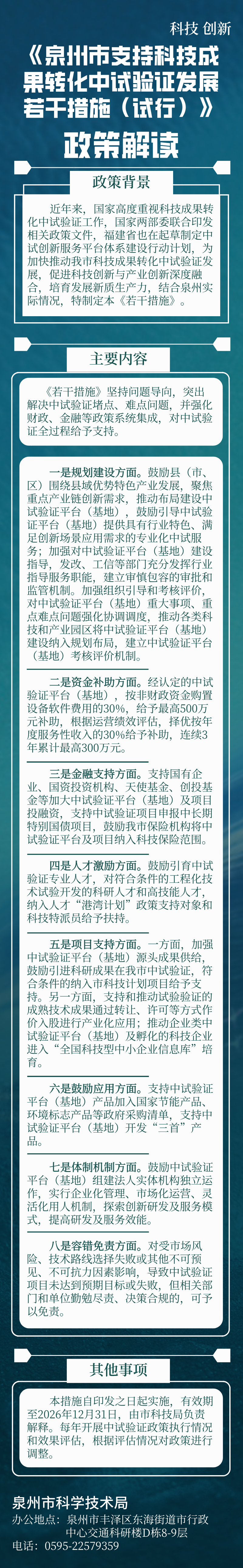 《泉州市支持科技成果转化中试验证发展若干措施(试行)》政策解读